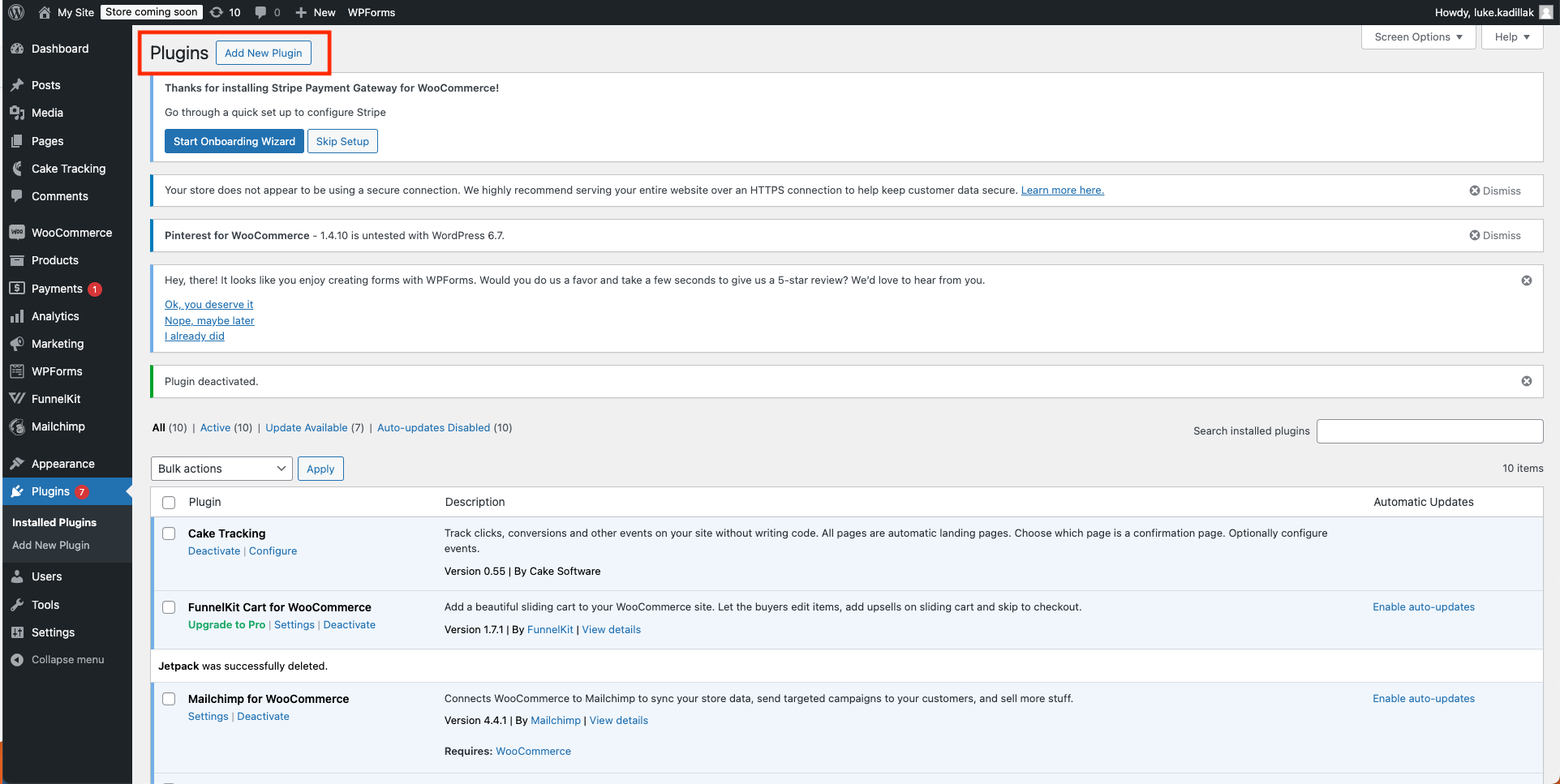 - Navigate to the Plugins main tab in your Wordpress Admin