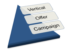 CAKE Basic is like a pyramid in regard to workflow because there is a hierarchy of how things function. Settings at the Vertical level will affect traffic but can be overridden in the Offer which can also be overridden in the Campaign.