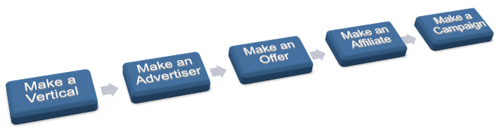 Best Practice: When creating a Campaign, the following process should be followed to ensure proper setup. The Vertical and Advertiser should be created first because the Offer requires both. The Campaign is the final destination marrying the Affiliate to the Offer.